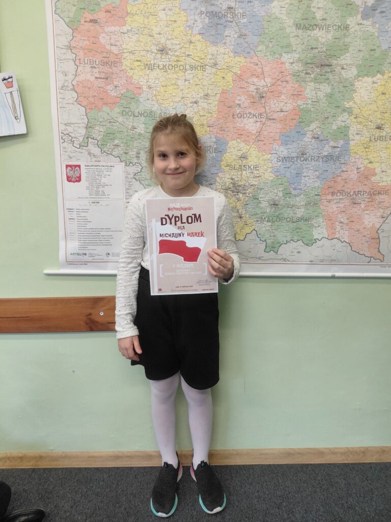 Michalina M. uczennica klasy 3a zdobyła II miejsce w konkursie plastycznym pt. „Moje Święto Niepodległości”. Gratulujemy!